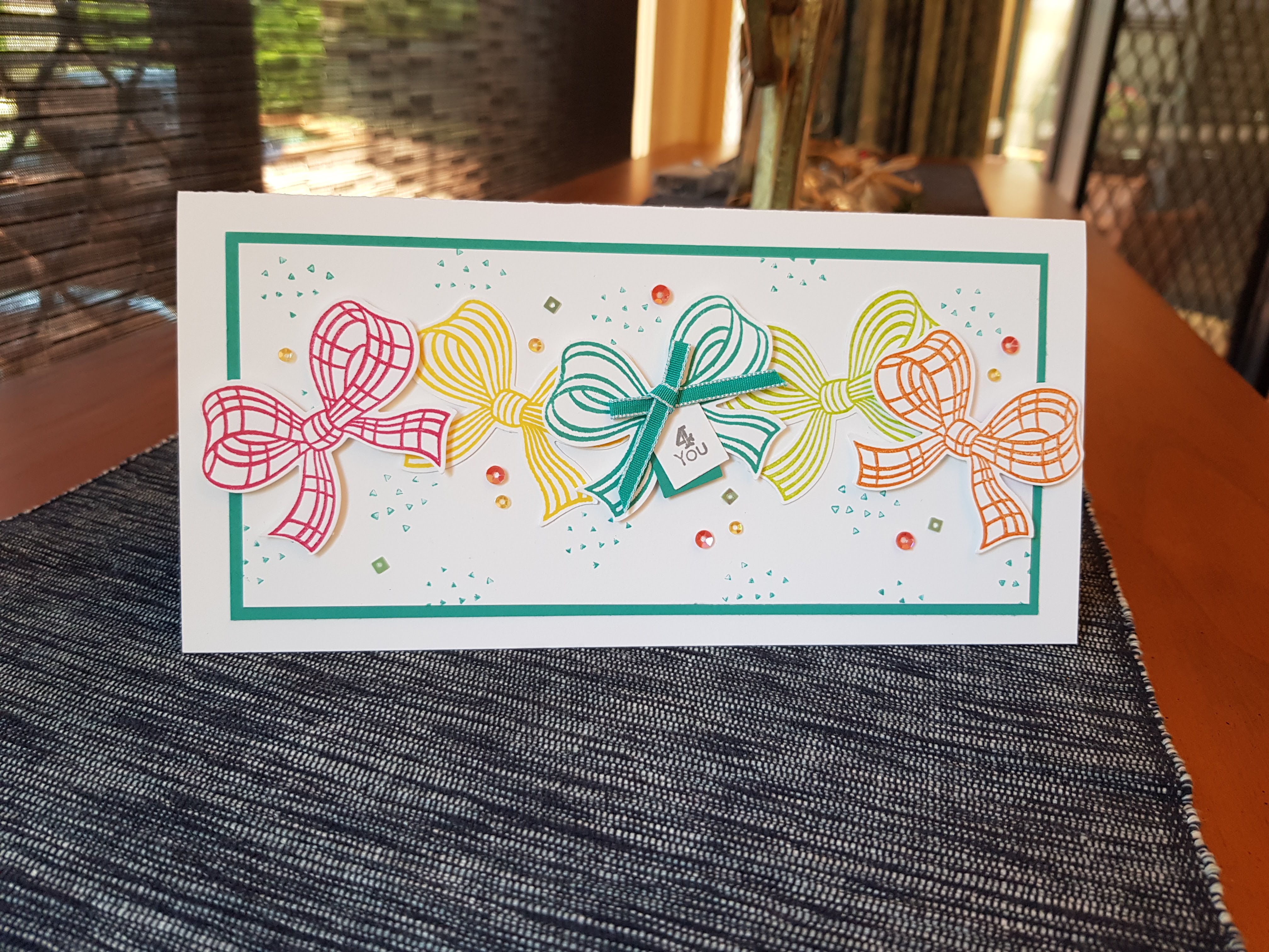 This is my interpretation of the sketch. I did change the orientation of my card though. I have used Stampin' Up! cardstock in Whisper White and Lemon Lime Twist and the ombre background was created using Lemon Lime Twist ink and my trusty brayer. All other products are non-Stampin' Up!